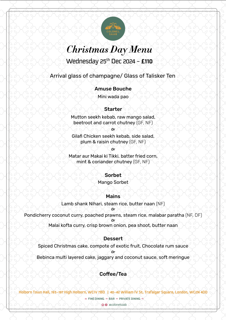 Welcome to Colonel Saab Trafalgar Square, an exciting culinary destination located at 40, 42 William IV St, London. This vibrant eatery offers a diverse menu that highlights the richness of Indian cuisine. Indulge in their a la carte options, featuring enticing Starters from the Chaat Bar, savory Mains like Butter Chicken and Shikari Raan, complemented by Sides and delicious Desserts such as Cardamom Milk Cake.